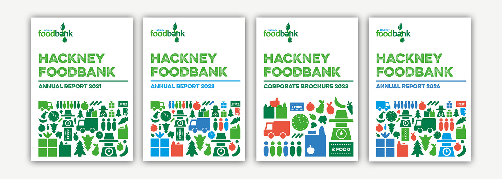 Following the Trussell Trust rebrand in 2024, I was asked to create a new annual report style that was in keeping with the brand refresh and updated guidelines, as shown below.
